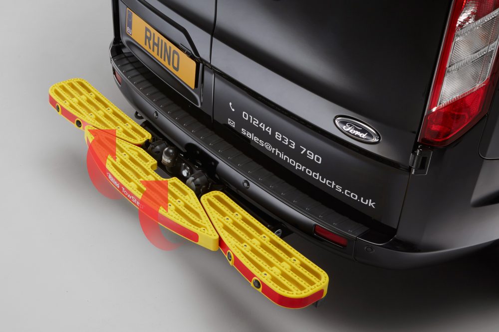 TowStep to tylny stopień dostępu ze zdejmowaną sekcją środkową, która umożliwia szybkie i łatwe zapięcie przyczepy do haka. TowStep nie ogranicza kąta skrętu wynoszącego 110 stopni. Dzięki dołączonym śrubom TowStep można bezproblemowo zamontować na dowolnym haku holowniczym.