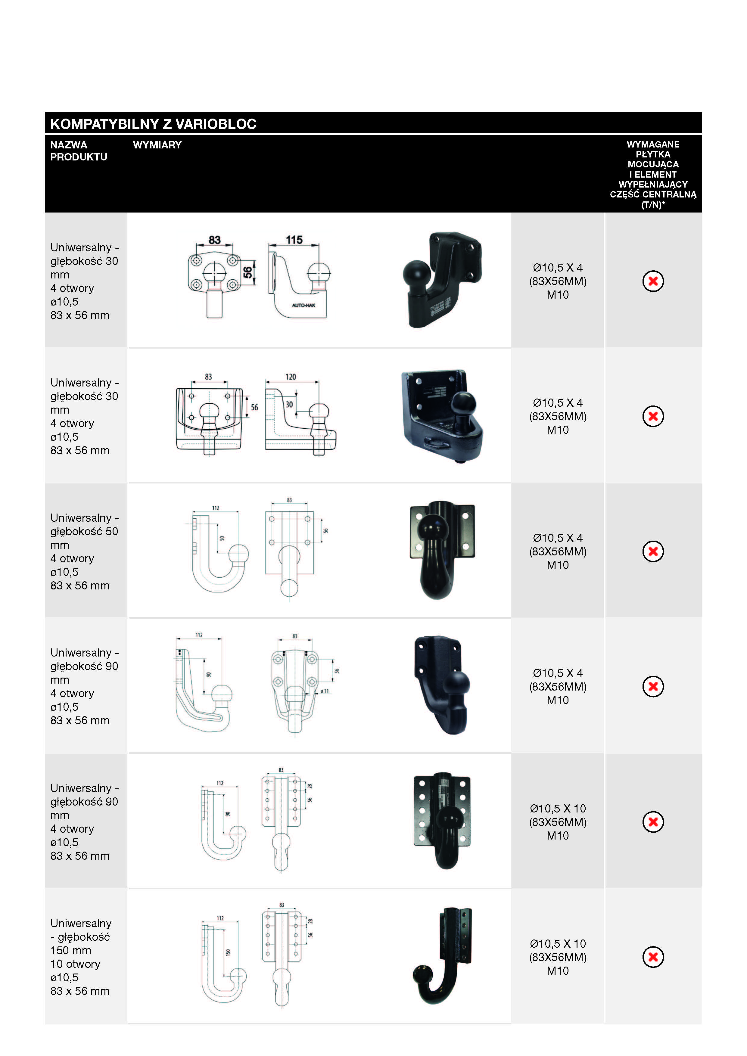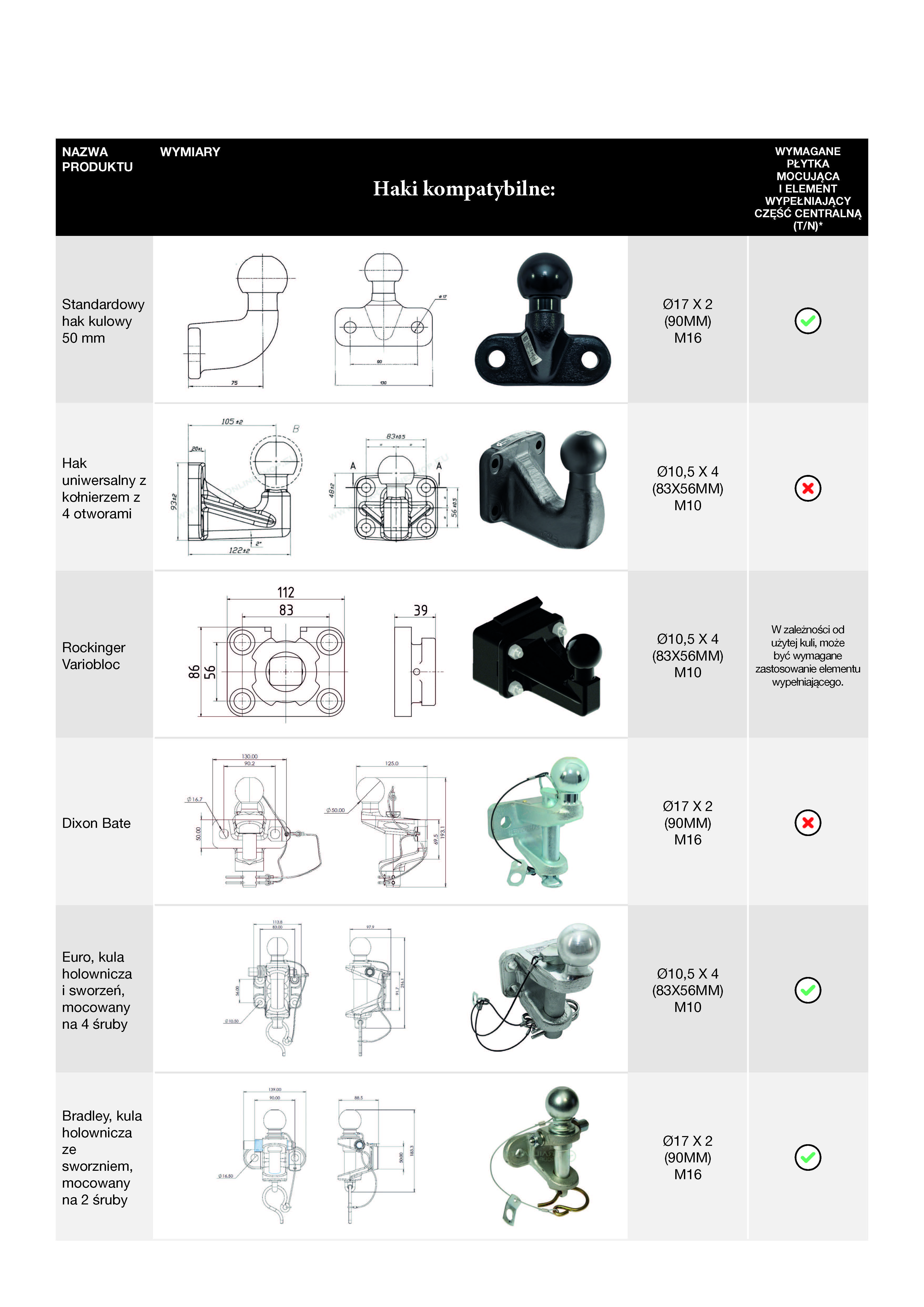 - Stopień jest kompatybilny ze standardowymi hakami holowniczymi, uniwersalnym zaczepem kulowym Bradley oraz z hakiem i zaczepem Bradle